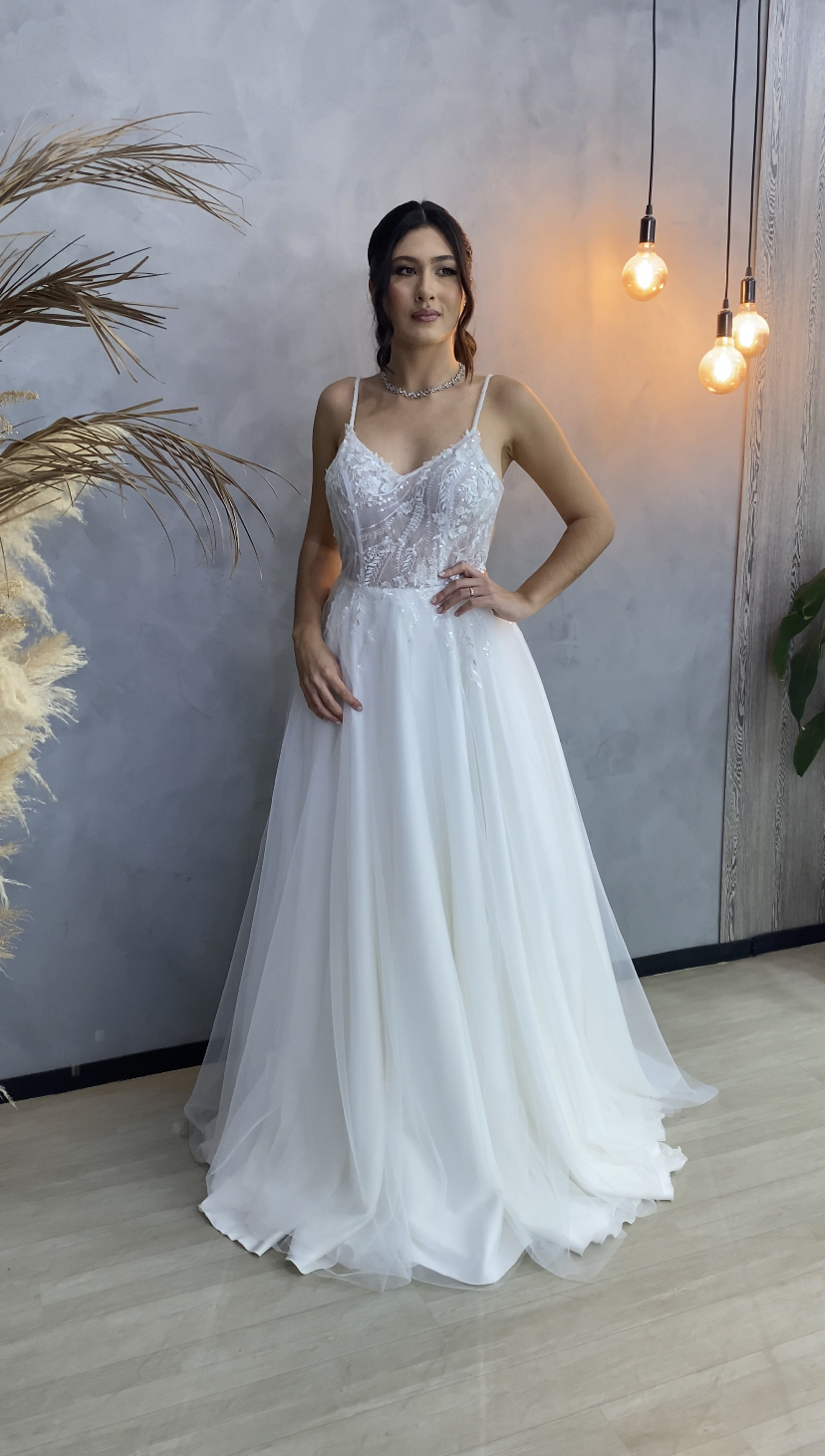 - Tecidos: prada acetinado off white, tule bordado off white com paete.
