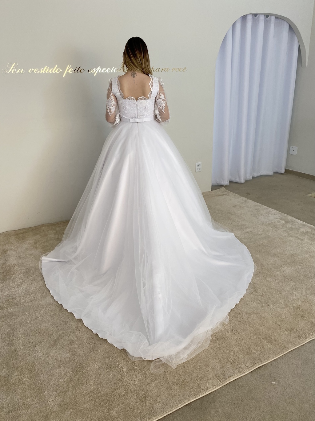 - Vestido de noiva longo.