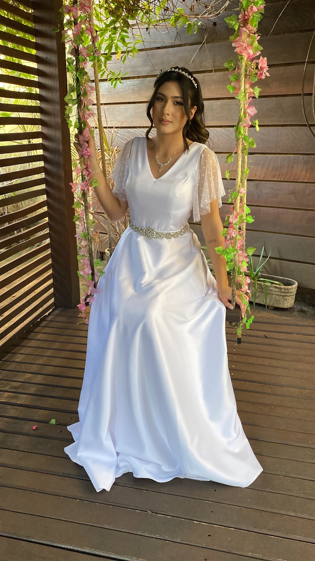 Observações: Itens como, (véu, coroa, armação e cinto) são opcionais e não estão inclusos.